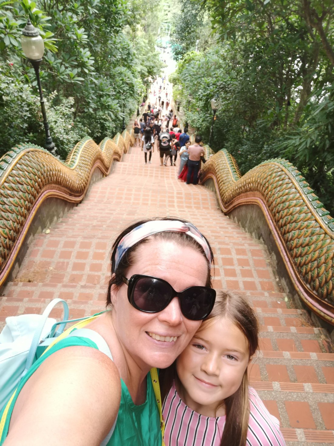 Doi Suthep ligger på ca 1000 moh, og vi måtte leie oss en taxi for å nå toppen. Vi kunne ha sykla å, men hadde glemt nøkkelen til låsen.