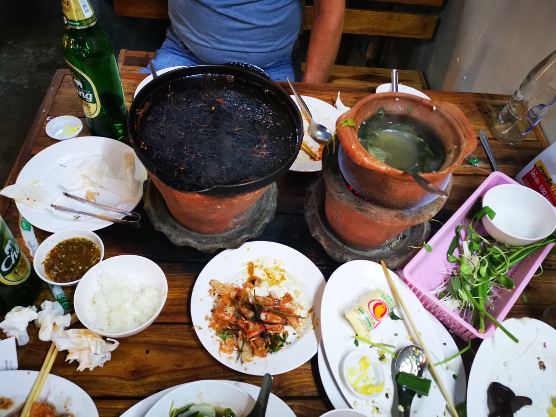 En annen kveld skulle vi prøve buffet, her ante vi ikke hva eller hvordan vi skulle tilberede maten, men vi lærer så lenge vi lever. Ikke mange turistene å se her, men flere hyggelige Thaier, som lærte oss opp i hvordan vi skulle tilberede måten vår.