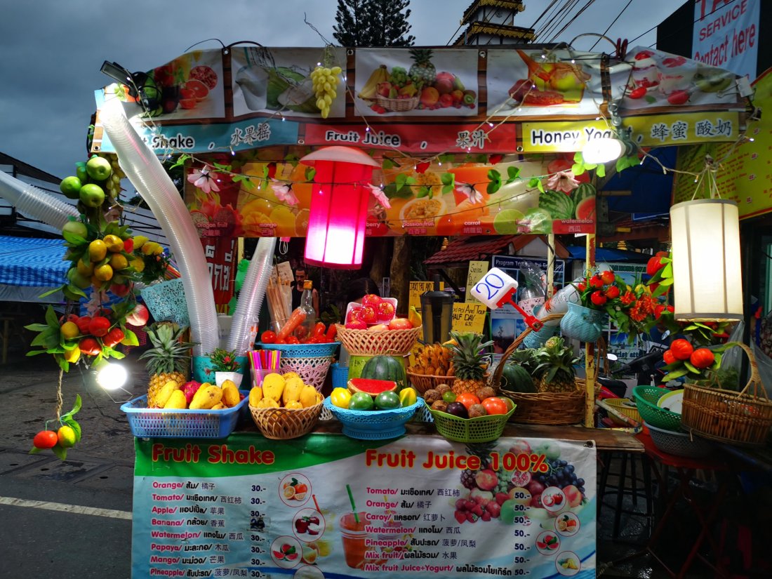 Fra Pagoda til øl. Vi spaserte rundt på walking Street på kvelden og koste oss med streetfood, grilla mais, friterte hønseføtter, fruktshake og sushi.
