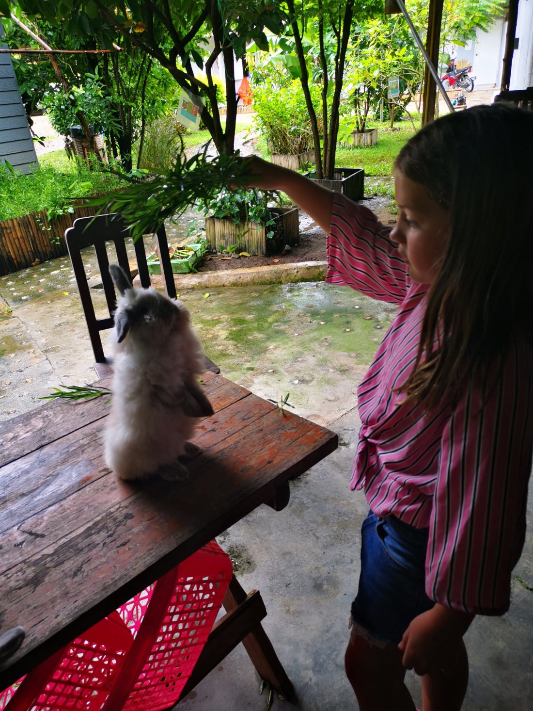 Thea hadde observert at det var mulig å bo på Farmstay, så vi ble nødt til å bli ei natt ekstra i Pai, ikke meg imot. På gården produserte de masse grønnsaker og frukt, og de hadde flere dyr på gården. Theas favoritt ble straks de 90 kaninene som var på gården, hun satte til og med på alarmen klokka 7 dagen etter, for å få tilbrakt mest mulig tid sammen med kaninene. Våknet for første gang med et smil:-)