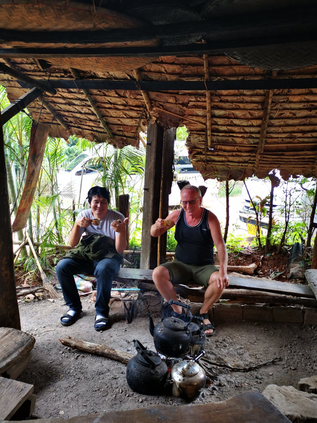 Onkel Stein fikk smake på landsbyens egenproduserte kaffe av kaffebønner fra jungelen rundt landsbyen.