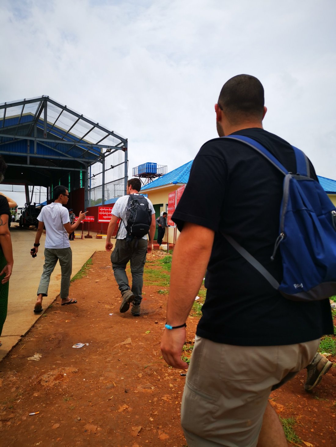 Vi måtte ut av bilen, og gå gjennom en grensekontroll.