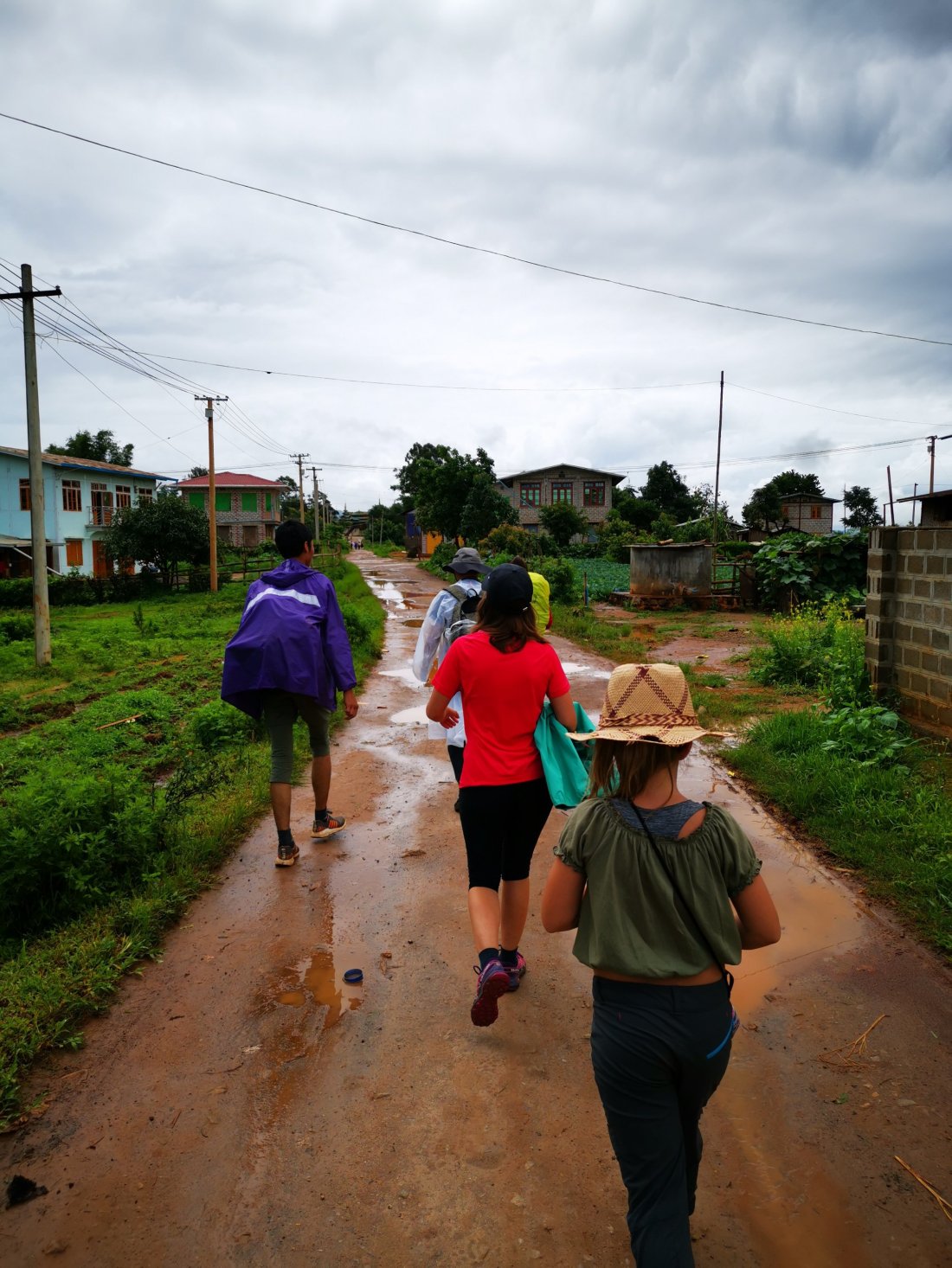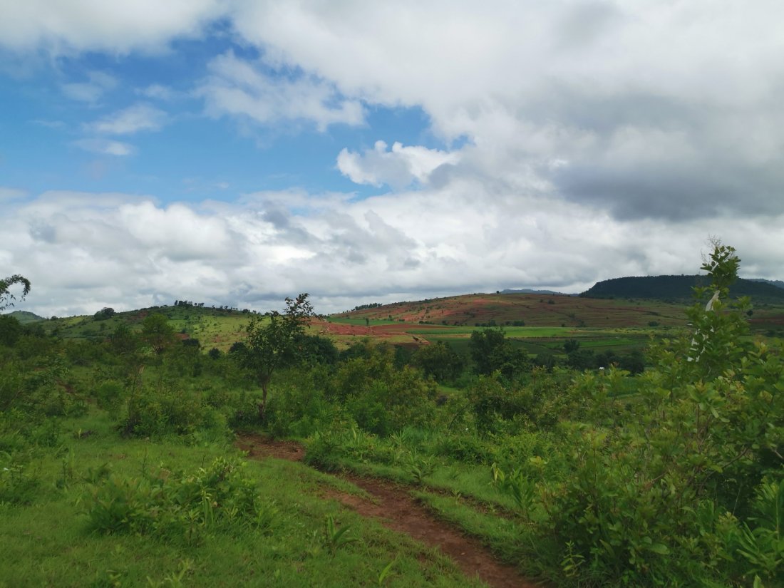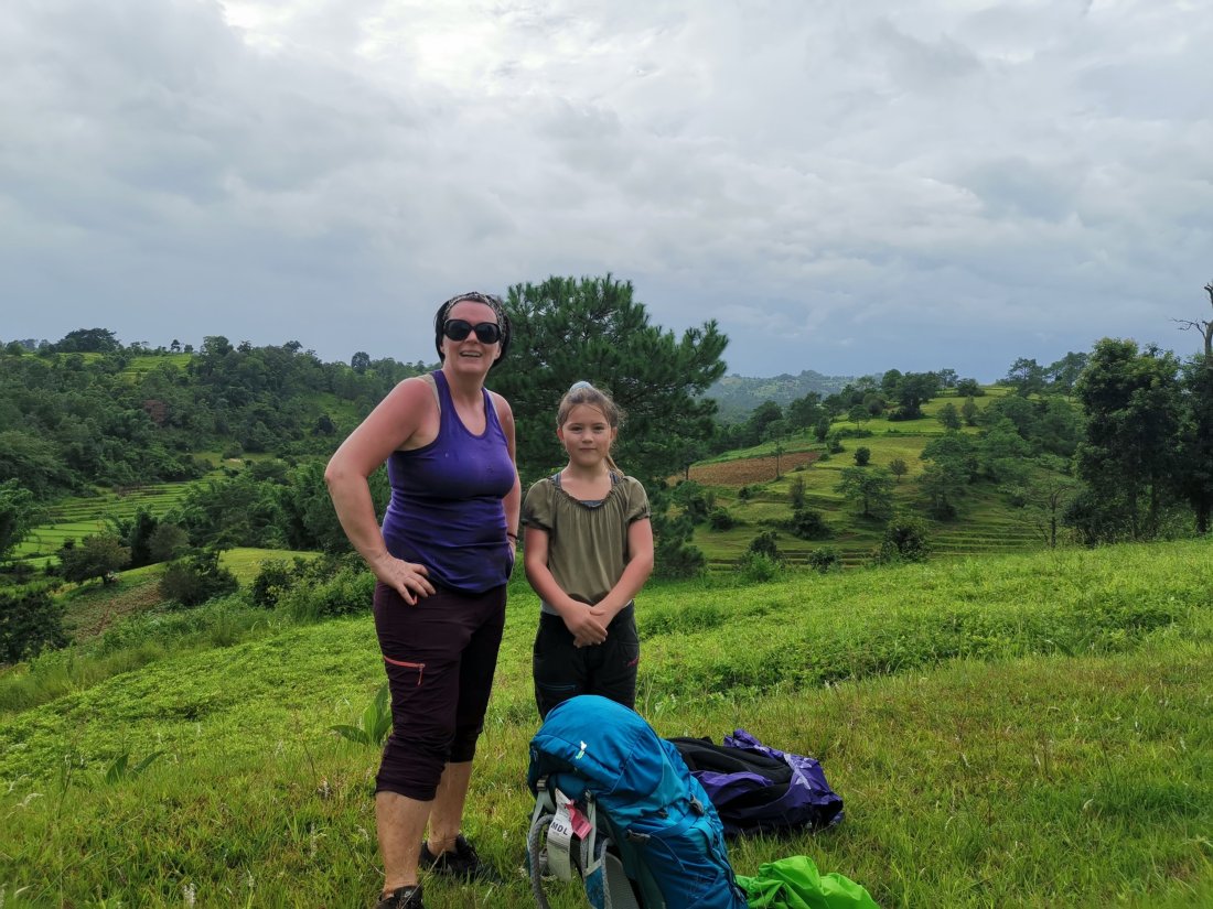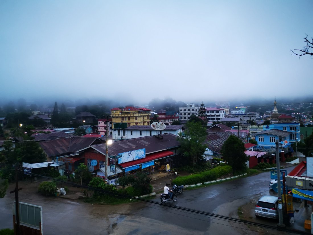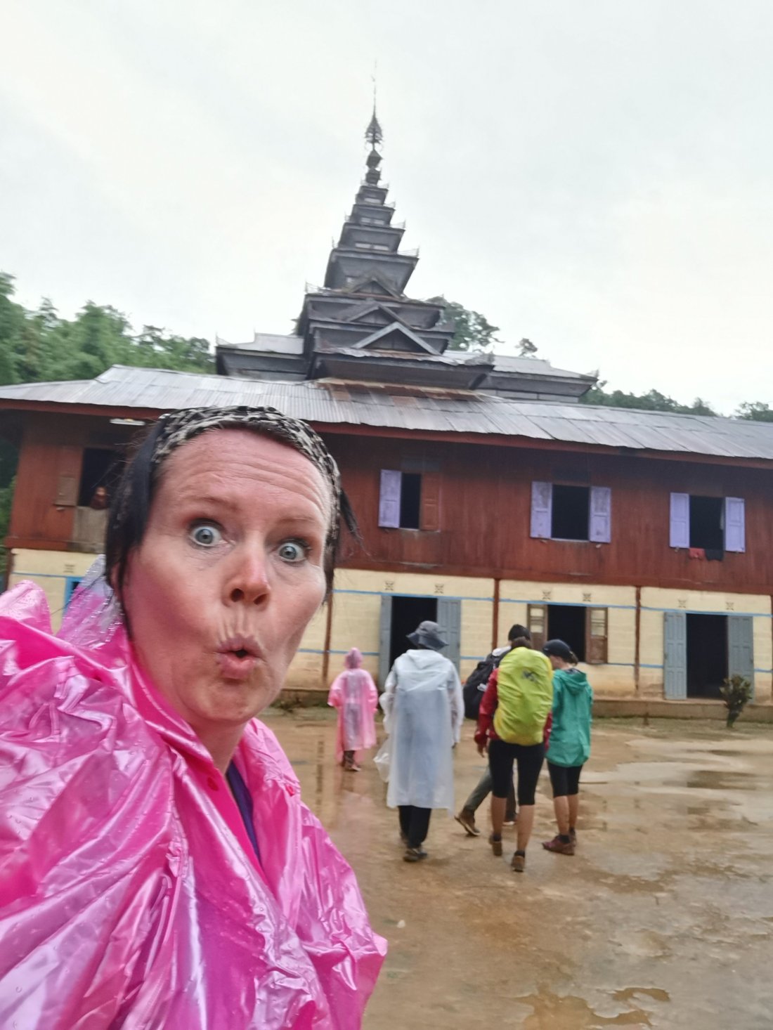 Noen ganger skulle jeg ønske det var et snev av liv i mine bekymringsnerver og at jeg ikke hopper ut i alt med liv og lyst. Men neida, denne gangen var det ei heller liv, så vi booka oss tur med Jungle King Trekking for en 2 dagers fjelltur i de Myanmarske fjellene. Vi hadde tatt bussen fra Bagan dagen i forveien, som var en meget interessant reise. Vi reiste tidlig på morgenen fra Bagan i en minibuss med flere andre backpackere. Etterhvert begynte bussjåføren å stoppe opp og ta på de lokale, ikke noe galt i det, men de alle ble pressa inn og de satt på små krakker i midten av setene. Vi stoppa flere ganger, for at sjåføren måtte prate med noen, og en annen gang kjørte vi rundt på en kompis av sjåføren, mens de skrek og hoia til hverandre. Nå skjønner vi at bussturer i Myanmar tar tiiiid. Men for oss var det en interessant opplevelse, og jeg fikk tyna tålmodigheten til ytterpunktene. Ankom Kalaw tilslutt, etter en svingete vei opp fjellsiden. Regnet lå tungt over Kalaw, men som de optimistene vi er, så tenkte vi at «i morgen blir det ikke regn». Våkna av at regna tromma på taket, fortsatt like optimistiske, vi spiste frokosten vår og pakket tursekken. Vi var klare for tur i fjellet.
