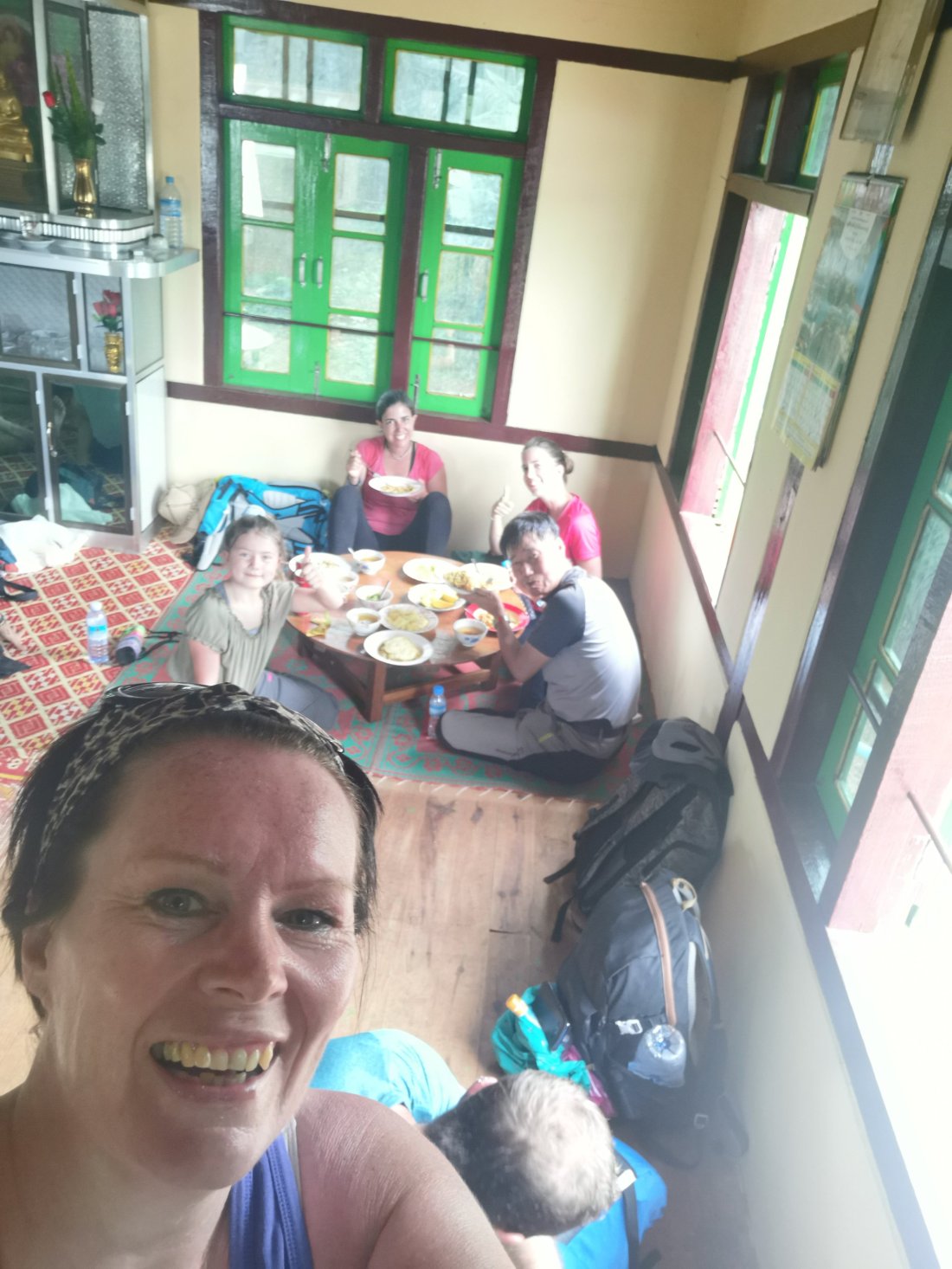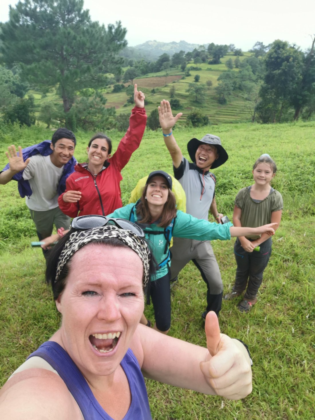 Hele gjengen var fortsatt ved friskt mot, og vi tok fatt på siste etappe. En stk pensjonist fra Korea, 2 unge jenter fra Barcelona, en burmesisk guide og to trønderbærter😊