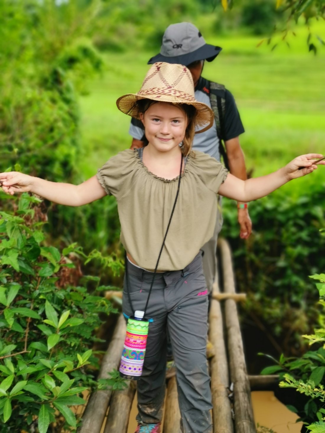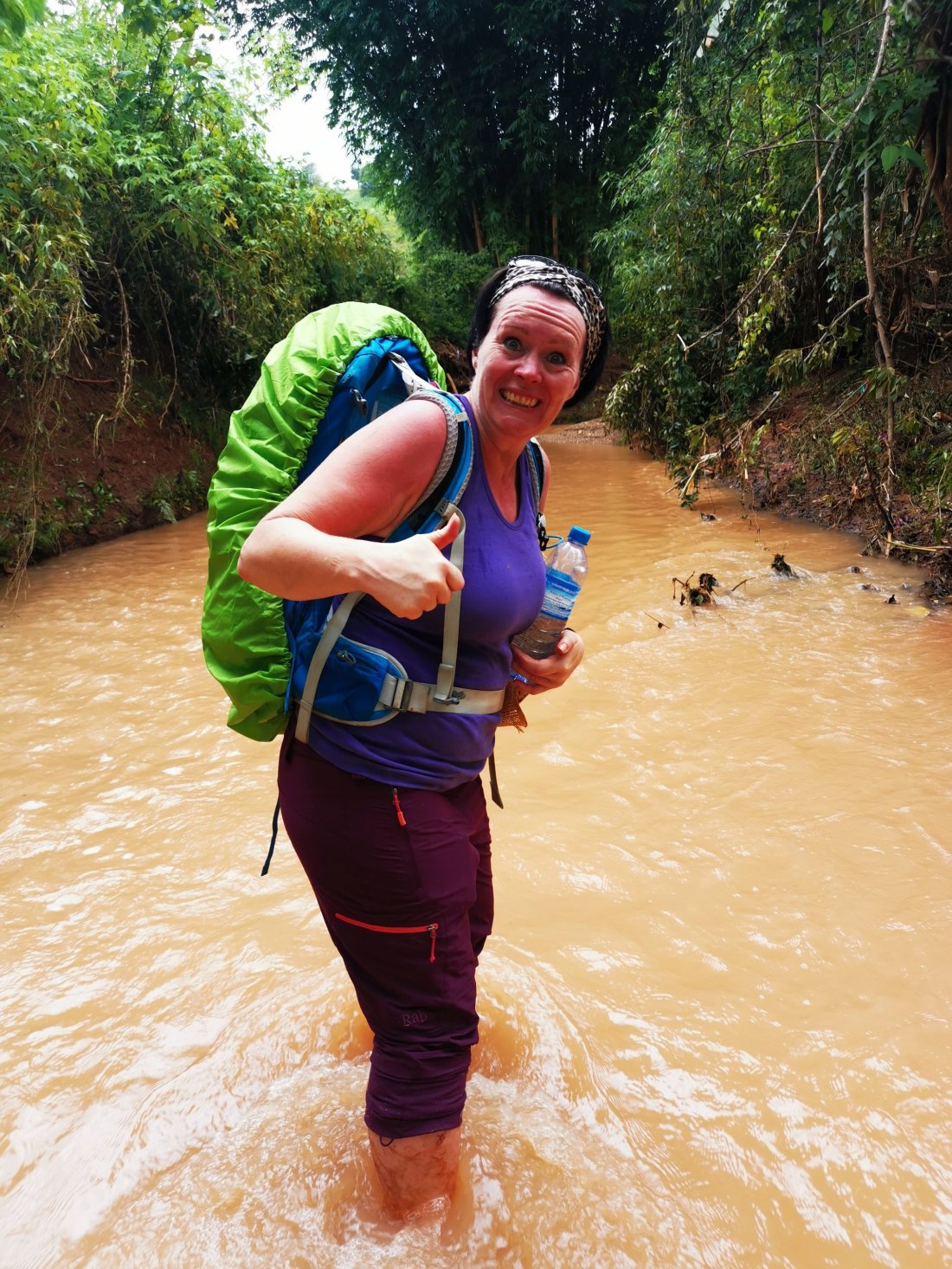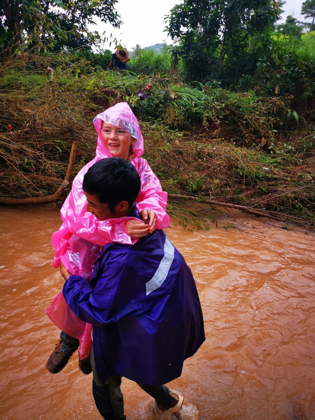 Guiden var en ung trivelig kar fra Myanmar, så han løftet Thea som ingenting over elva.