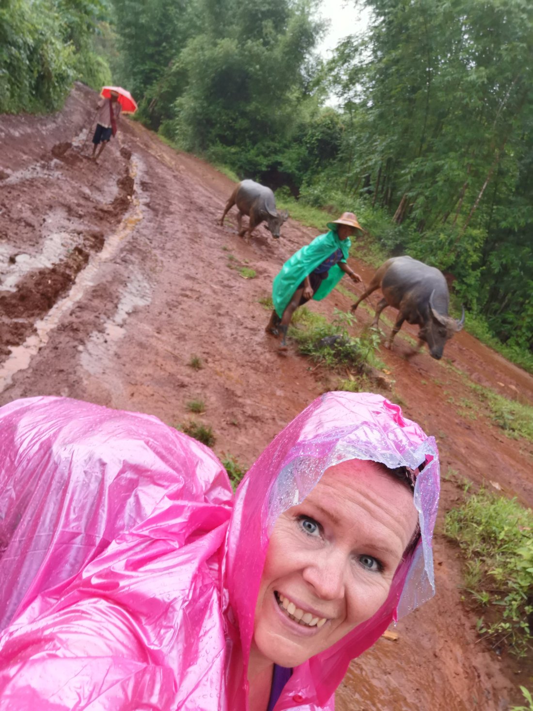 Etterhvert innhentet regnet oss, og vi måtte ikle oss våre nyinnkjøpte ponchoer igjen.