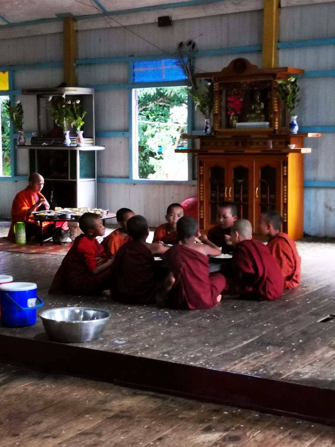 Klokka 04. 30 var det klart for bønn, og hanen var også på munkenes side, han galte det høyeste han maktet og i flere timer. Generatoren ble satt igang og det var fullt liv rundt oss, men heldigvis klarte vi å sove litt til. Liiiitt tidlig å stå opp.