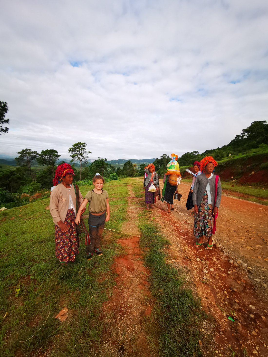 07.00 var vi klare for å gå videre. På veien møtte vi flere kvinner, som var på vei til monastryet for å donerè mat til munkene. Da vi spurte om vi kunne få ta bilde av de, så hadde de ikke tid, de måtte til monstryet. Men da de oppdaget Thea, hadde de all verdens tid og vi fikk gjerne ta bilder, sååå søte damer♥️