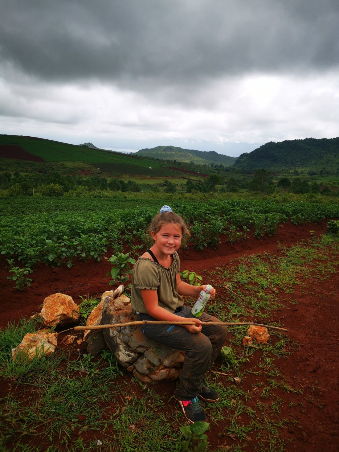 Vi vandret i vakker natur i flere timer, og så endelig….. Langt der fremme så vi målet!!! Inle Lake♥️ Gleden var stor og Thea syntes ikke det var såååå langt igjen.
