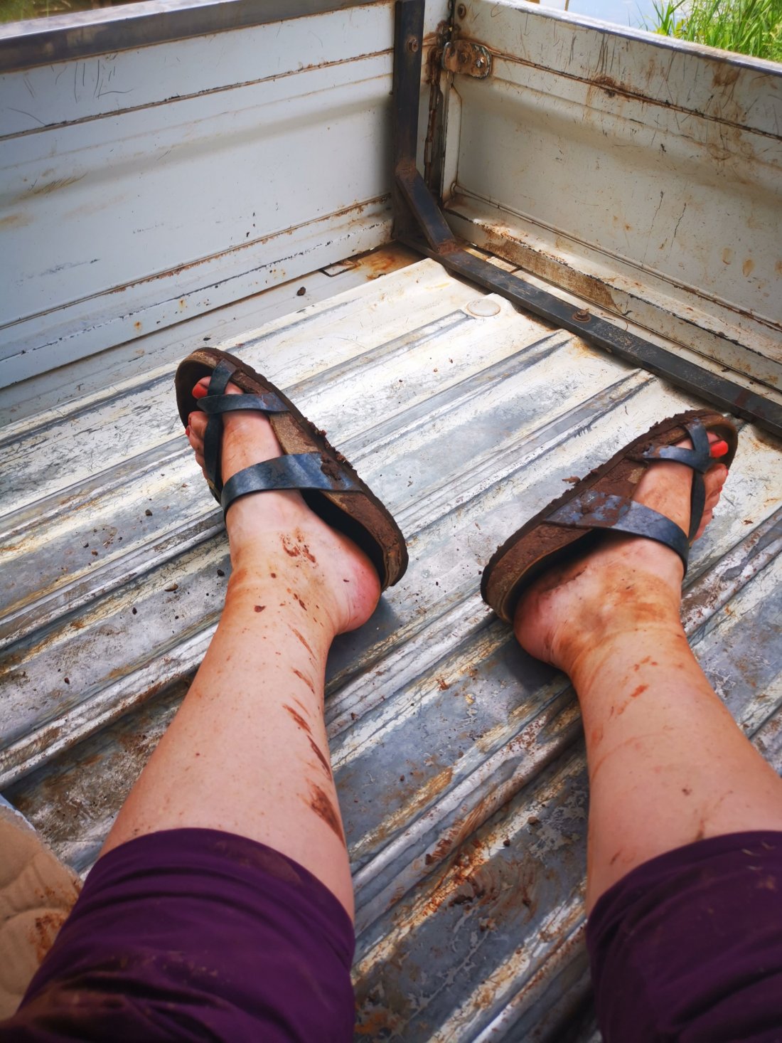 Da vi endelig kom ned til en vei og den første bilen kom forbi, haika jeg og Thea de siste 2 kilometerne til lunsjplassen. Betalte med glede 30,- for å slippe å gå 2 km i stekende sol.