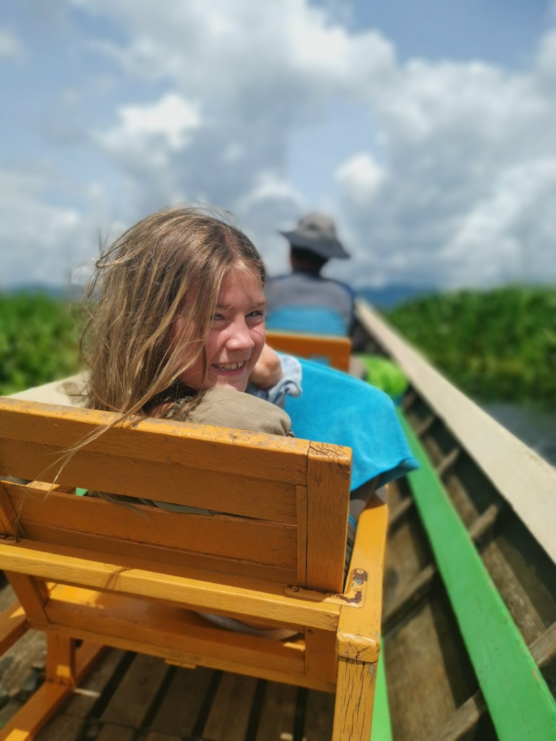 Men hva er 2 km, vi hadde gått i 4 – FIRE mil!! Jeg var så stolt av Thea som hadde gjennomført denne turen i regn og stekende sol, med dårlig søvn og lite mat!!! Vi hadde klart det!! Og Thea innrømmet etterpå at «mamma, det var egentlig en veldig fin tur og veldig arti å sove på monsastryet». Jeg kunne spist opp lille larven min♥️Vi inntok en deilig lunsj (ALT smakte godt nå), før vi satte oss i båten som skulle ta oss over Inle Lake.