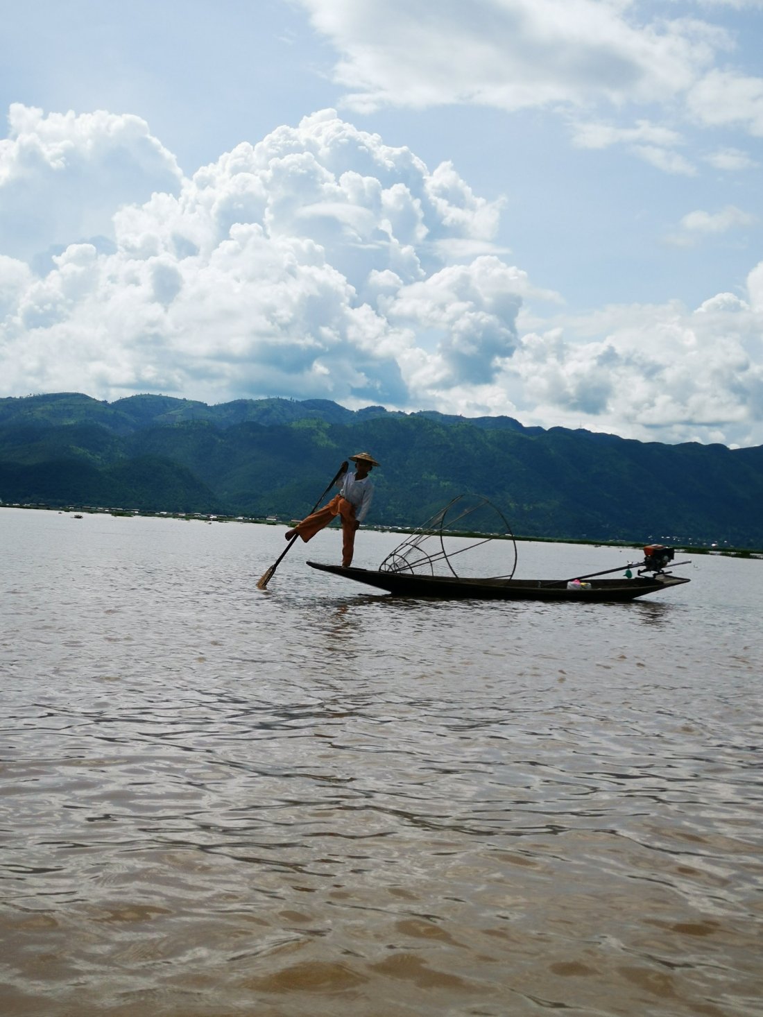 Fiskemennene på Inle Lake har sin gamle tradisjonelle måte å fange fisk på.Etter en time i båt, kom vi oss på land og fikk kapret den første taxien vi så, nå var vi klare for en dusj!!!