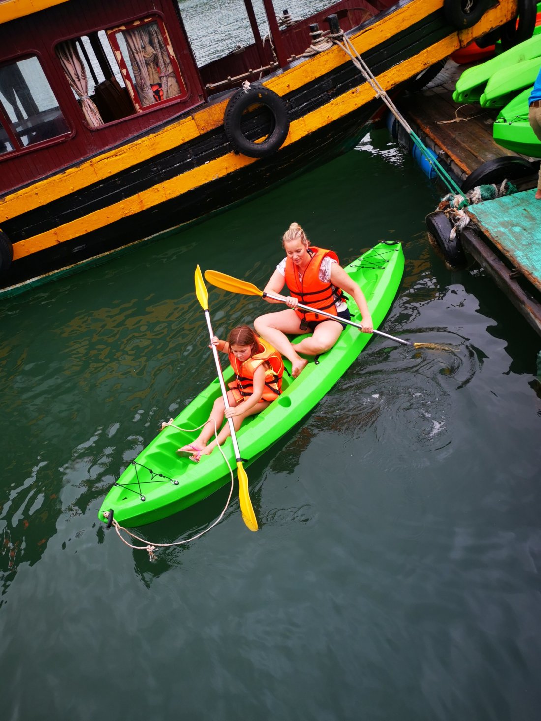 Vi ankom Hanoi etter en kort flytur fra Myanmar. Etter en lengre taxitur fra flyplassen sent på natta, sjekka vi inn på hotellet i Hanoi og fikk oss ei hard seng, og et rom uten vindu. Jaja, vi er godt vante, så vi sovna godt. Hanoi var for oss begge altfor varmt, det var ikke luft, og svetten rant bare vi sa «hello» til en vietnameser. Og som datter som mor, vi blir ikke i godt humør av varmen. Booka oss derfor tur ut til Ha Long Bay med et vakkert cruiseskip for 3 dager og 2 netter, dette skulle bli luksus. Dagen før avreise fikk jeg influensa, (trodde jeg), og prøvde å få omgjort avreisen, men vi fikk desverre ikke pengene tilbake. Jaja, det er bare litt feber, og hodepine, så går sikkert bra. Vondt i kroppen, men det tåler vi. Hoppa på både buss og båt, og ankom cruiseskipet som skulle ta oss ut til vakreste Ha Long Bay. Jeg krøp til sengs før vi hadde fått lagt ut fra kai. En fin tur i Ha Long Bay.