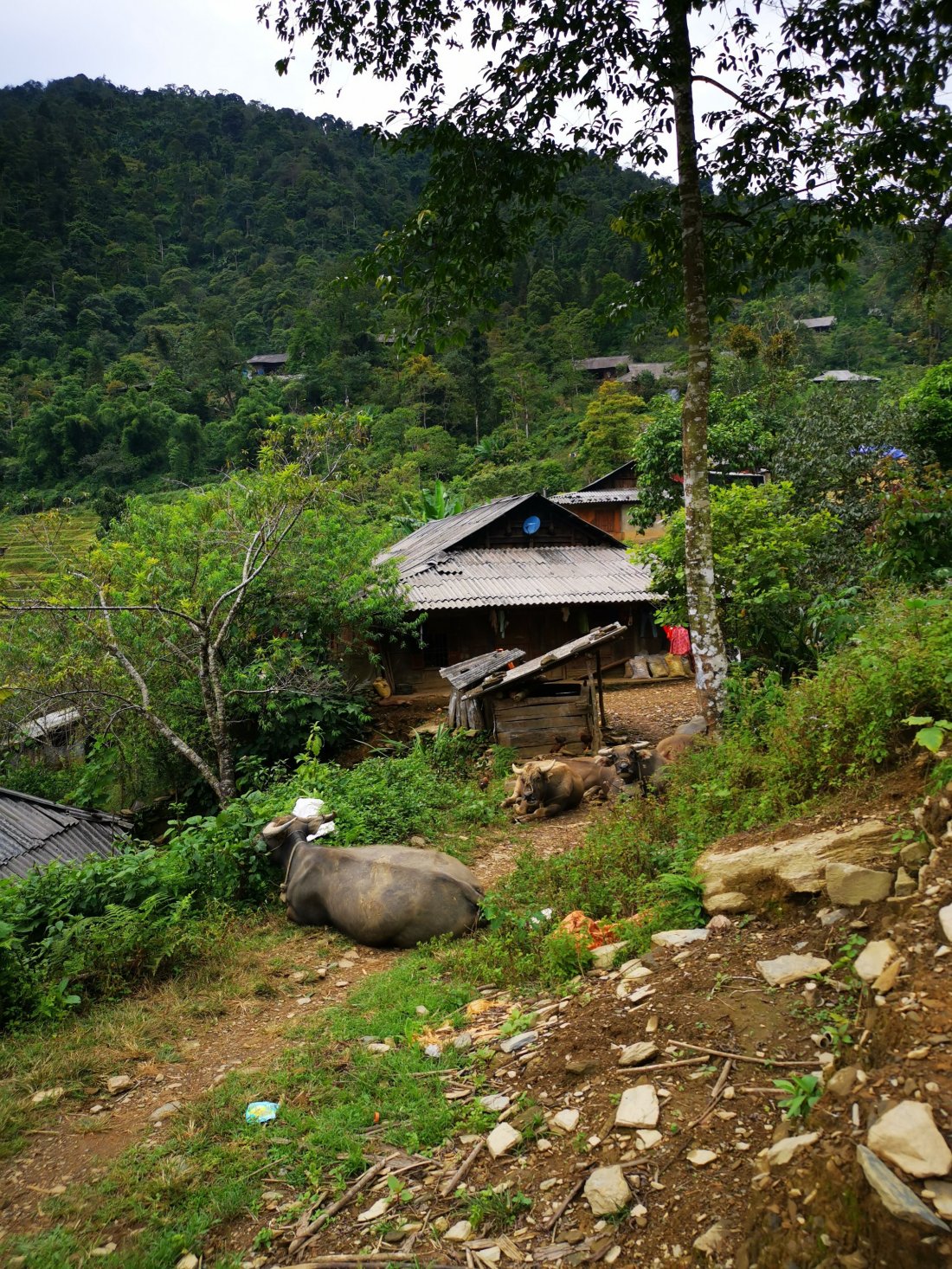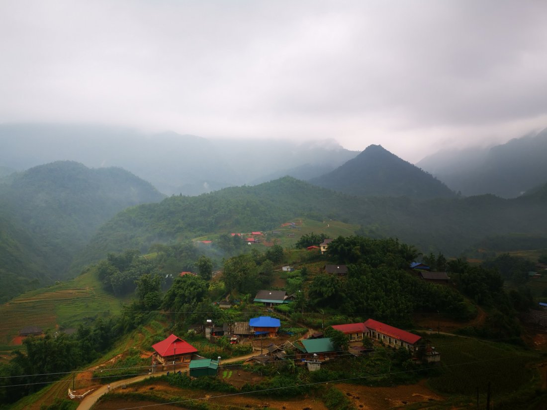 Kom frem til Sapa klokka 04.00, men fikk sove på bussen til kl. 06.00 og da var det ut. Og der sto selgere, taxisjåfører, hotellansatte og ellers alle andre som ville selge trøtte backpacker et eller annet til overpris. Hoppa tilslutt inn i en taxi som kjørte oss til Cat Cat Village, 3 km fra Sapa sentrum.