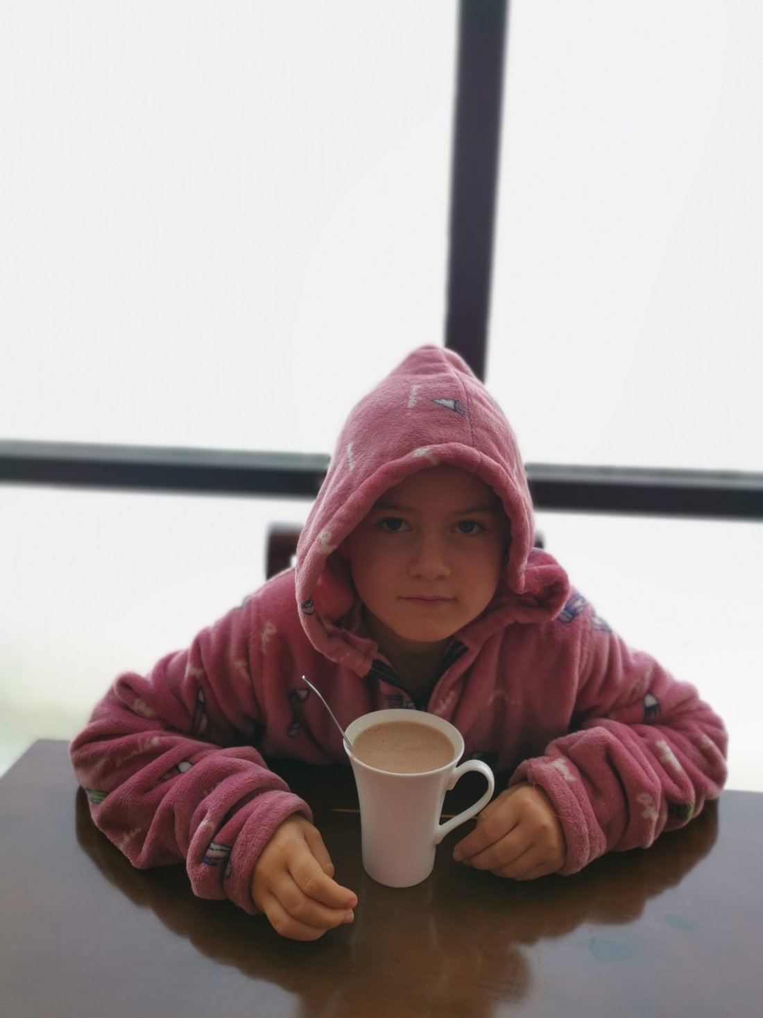 På toppen var det friskt og kjølig, så vi måtte varme oss på en kopp kakao.
