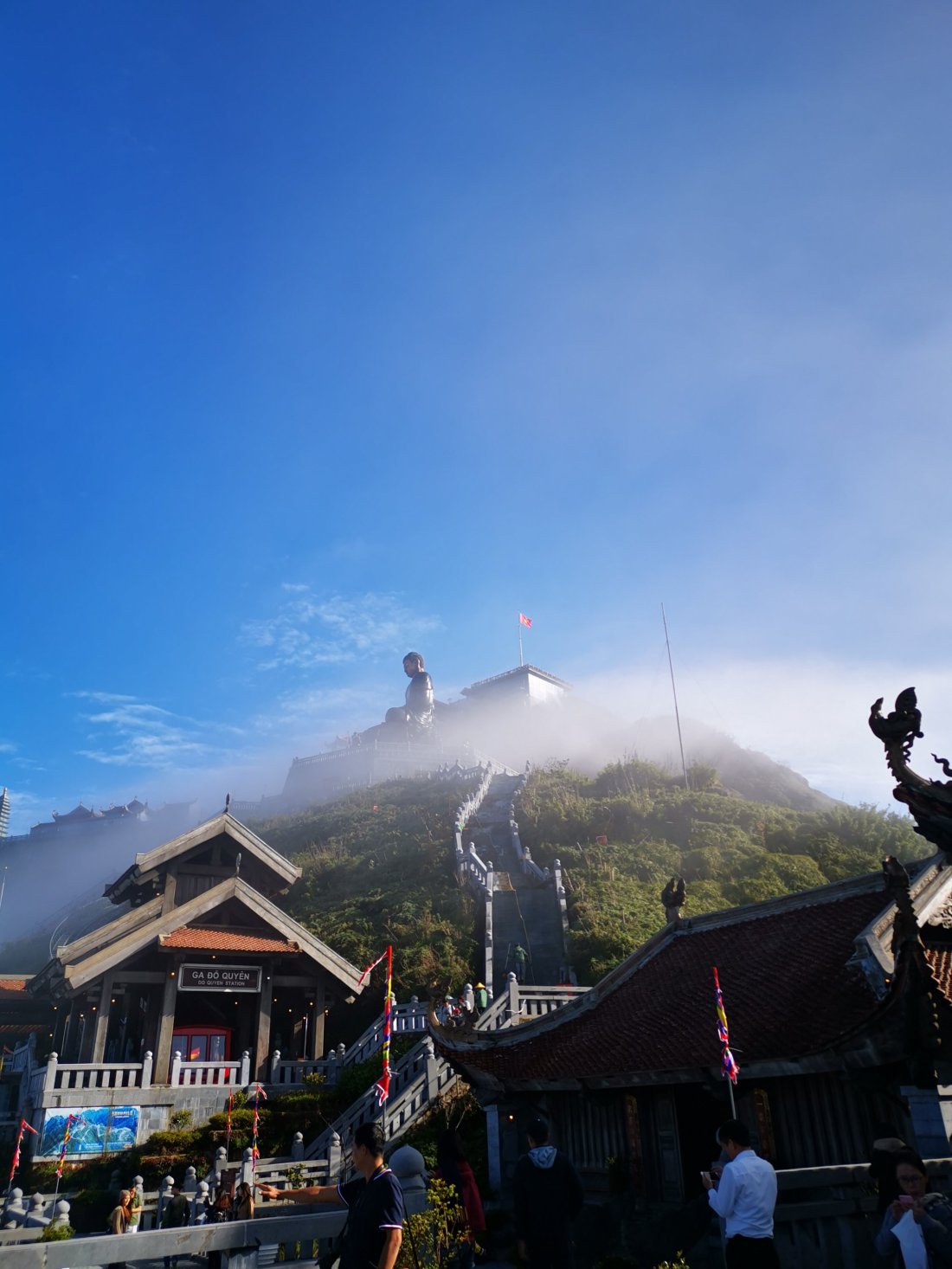 Der oppe er toppen av Fansipan, og dit måtte vi. Og tøffe i tryne som vi er, så skulle vi gå til toppen, og vi skulle ikke ta noe gondol opp de siste metrene… Puhhhhh, litt tynn luft, og ca 1000 trappetrinn… Men vi klarte det!!!