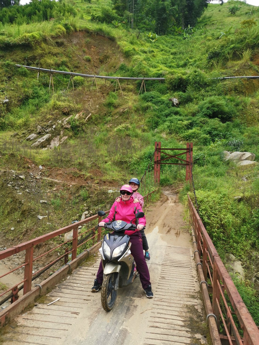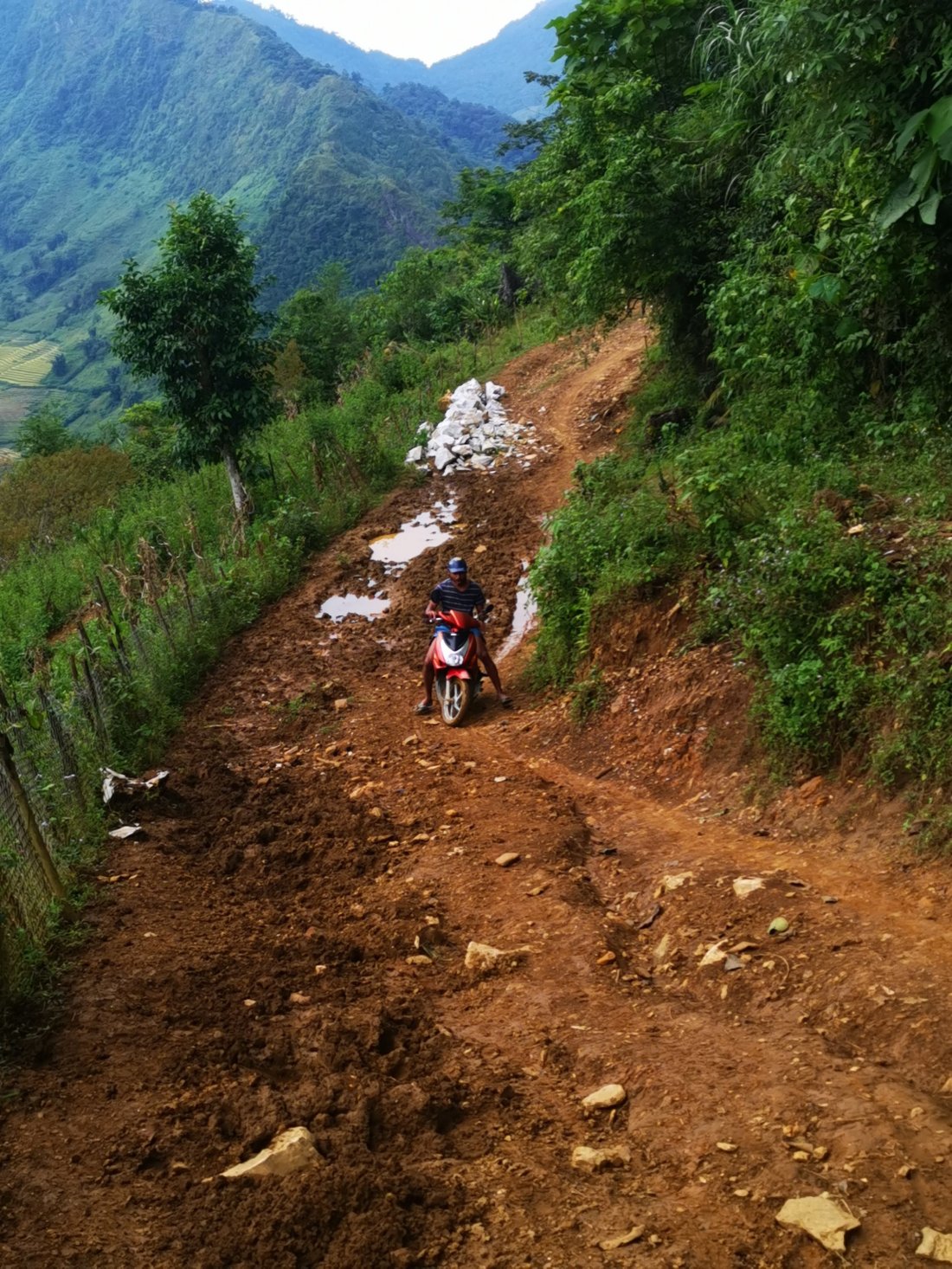 Det er noe med fjellene, jeg føler meg så hjemme og avslappet med denne fantastiske naturen. Planen var å være her i 2 netter, men det var ikke mulig å forlate Sapa, så vi ble i 4 netter. Vi leide oss scooter og la ivei på tur for å oppleve alle de små landsbyene rundt Sapa. Vi fikk et opptegna kart av hotellet som visste vei. Vei er vel å ta hardt i, vi ville vel heller kalt det en krøttersti. Men frem skulle vi, og etter å ha sjonglert scooteren over svære steiner, vannhøl og smale bruer, kom vi endelig frem til en liten landsby med en liten butikk, med både mat og drivstoff, her fikk vi alt vi hadde behov for.