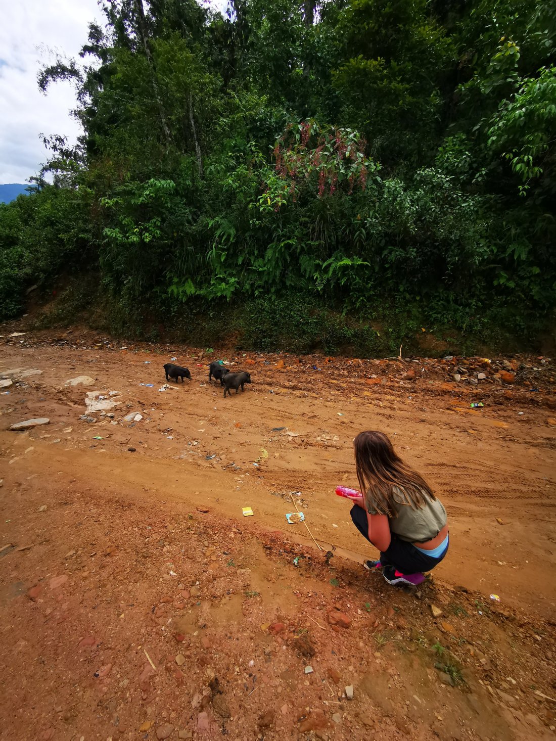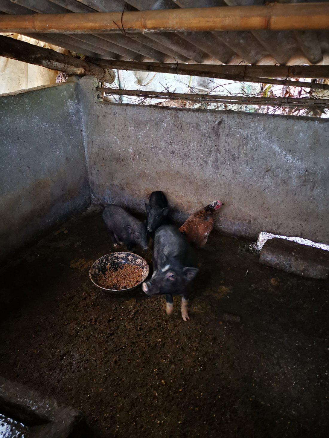 Thea har blitt veldig glad i gris på reisen, så vi er innom «alle» grisefjøs, for å hilse på disse «søte» små dyra.