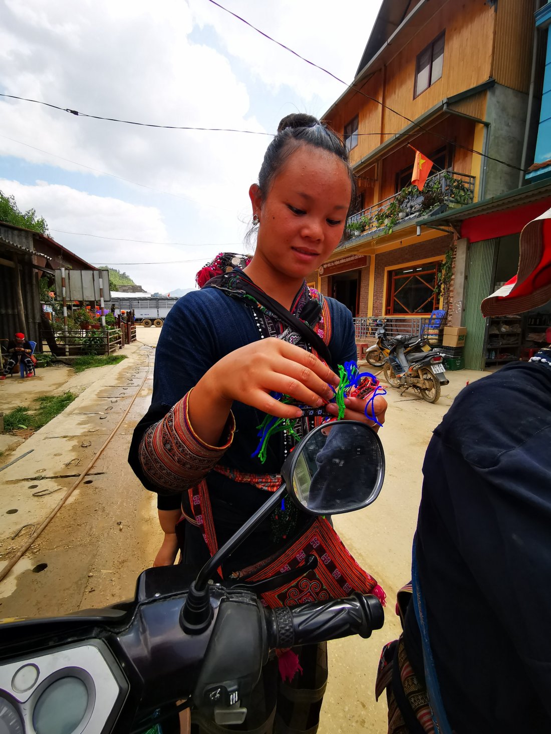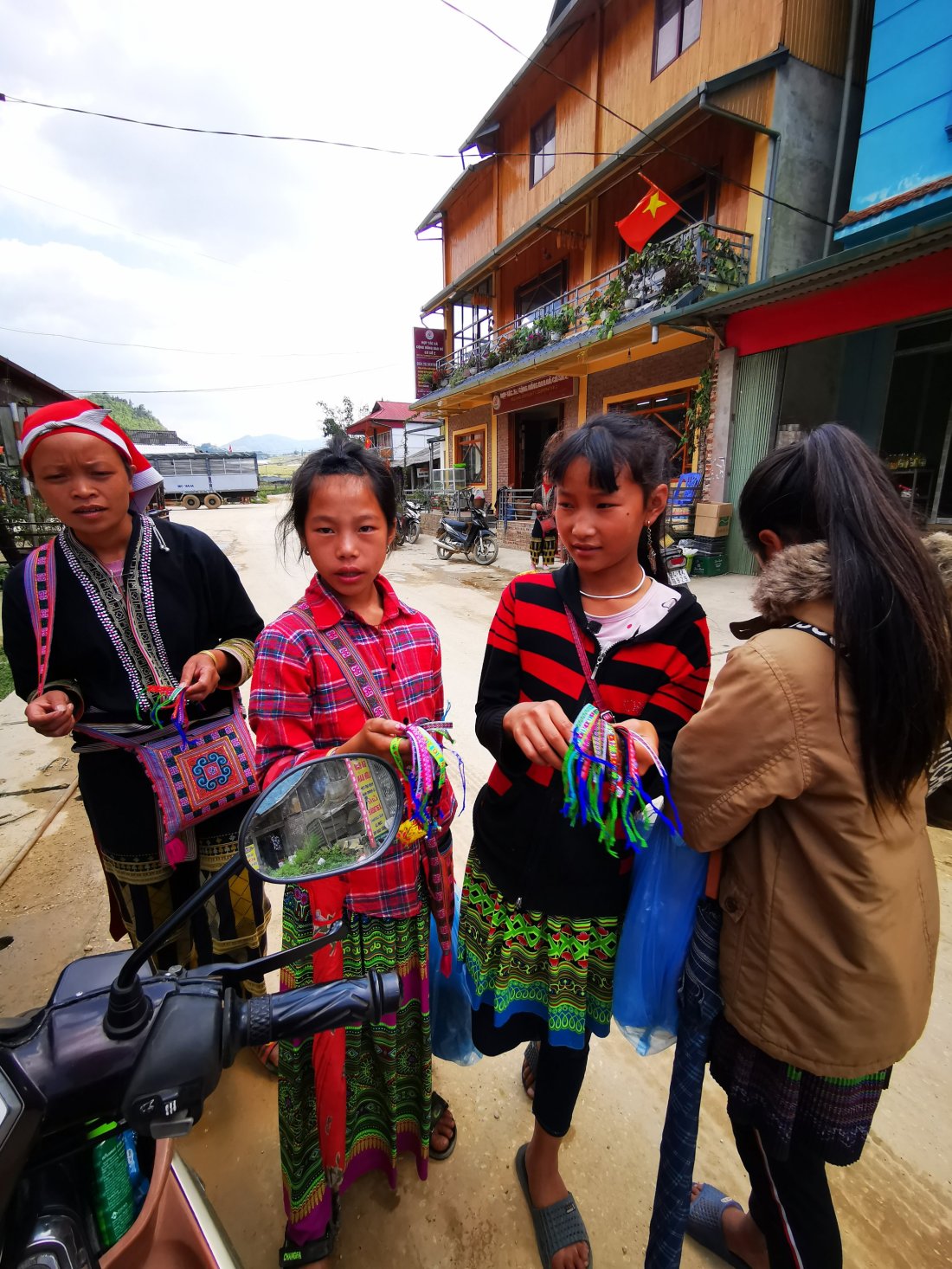 I landsbyen Ta Phin ble vi overrøst av selgere som ville selge oss alt fra hjemme broderte drakter til kinasydde vesker. Masse fint, men sekken er desverre allerede full, og vi har 8 måneder igjen å reise, så vi måtte takke nei til alt det fine håndarbeide. Men vi fikk beundre deres flotte håndbroderte drakter.